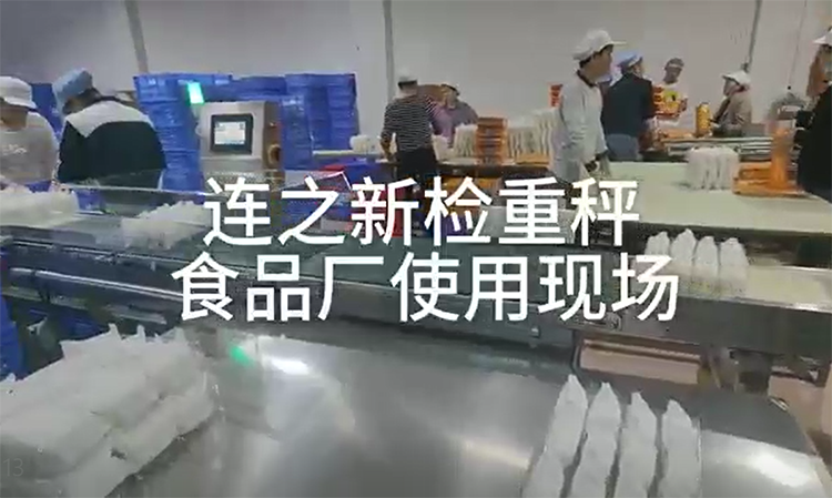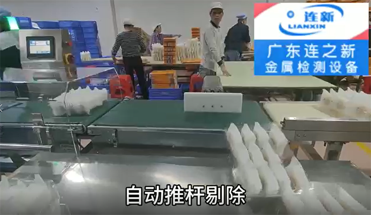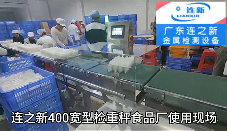連之新廣東檢重秤/在線重量剔除秤 食品廠使用現場圖片:重量超輕或超重都能自動剔除