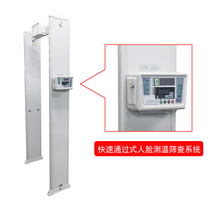 人體測溫安檢門一體機II型遠距離高精度人體測溫安檢門,集帶人體溫度檢測和金屬探測為一體的安全檢測門,門頭裝有高精度的體溫檢測探頭,探測角度可以上下移動, 能夠測量人體額頭的表面溫度,然后根據(jù)人體額頭的溫度與體溫的關(guān)系得到人體的實際體溫。檢測儀的光學組件將額頭發(fā)射和反射的能量匯集到傳感器上,通過電子組件將此信息轉(zhuǎn)化成溫度讀數(shù)并顯示在顯示面板上,當溫度讀數(shù)超過高溫報警值時,儀器會發(fā)出報警聲.報警溫度可隨意設(shè)置.具有防水、防火、防腐等特點。適用于管制刀具和槍支等危險品的安全檢查,廣泛應用于適用于機場,車站,出入境檢查站,等人員密集場所。是防止疫情擴散的有效手段。
