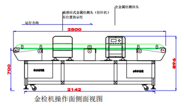 采用磁感和電平衡檢測雙系統探測型數字式金屬檢測機,整機采用304不銹鋼設計制作,并且前探頭采用傳統檢針機制作有位置指示燈功能,第二組探頭為全金屬檢測機系統,可檢測出細小的鐵、銅、鋁、不銹鋼等所有金屬異物。